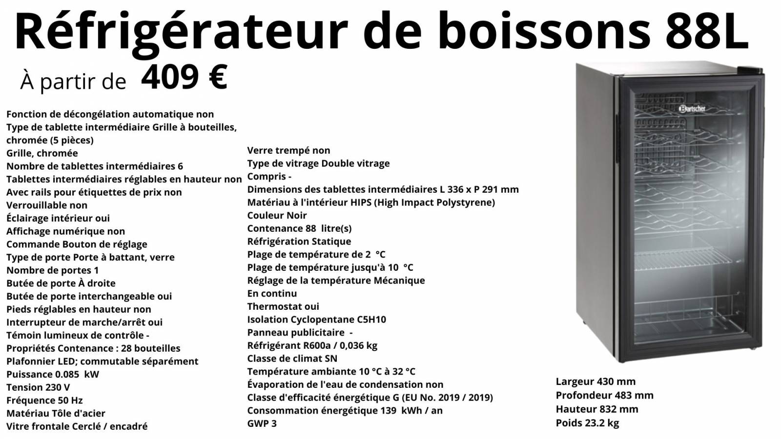 4- Réfrigérateur de boissons 88L