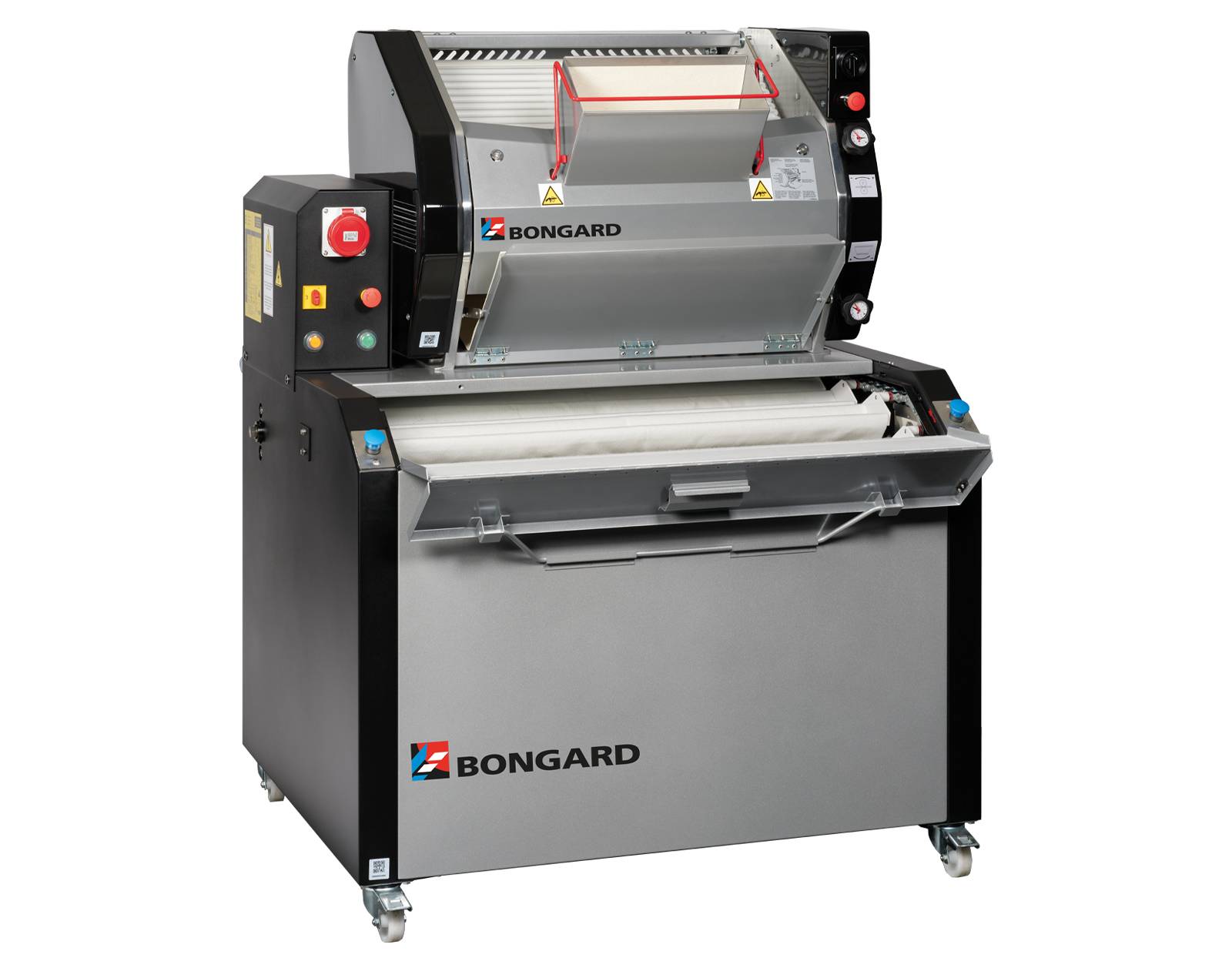 Đu point de vue Sécurité, la goulotte haute et évasée permet de conserver les mains à bonne distance des rouleaux pour éviter tout accident. La barre rouge, si elle est actionnée, arrête automatiquement la façonneuse.