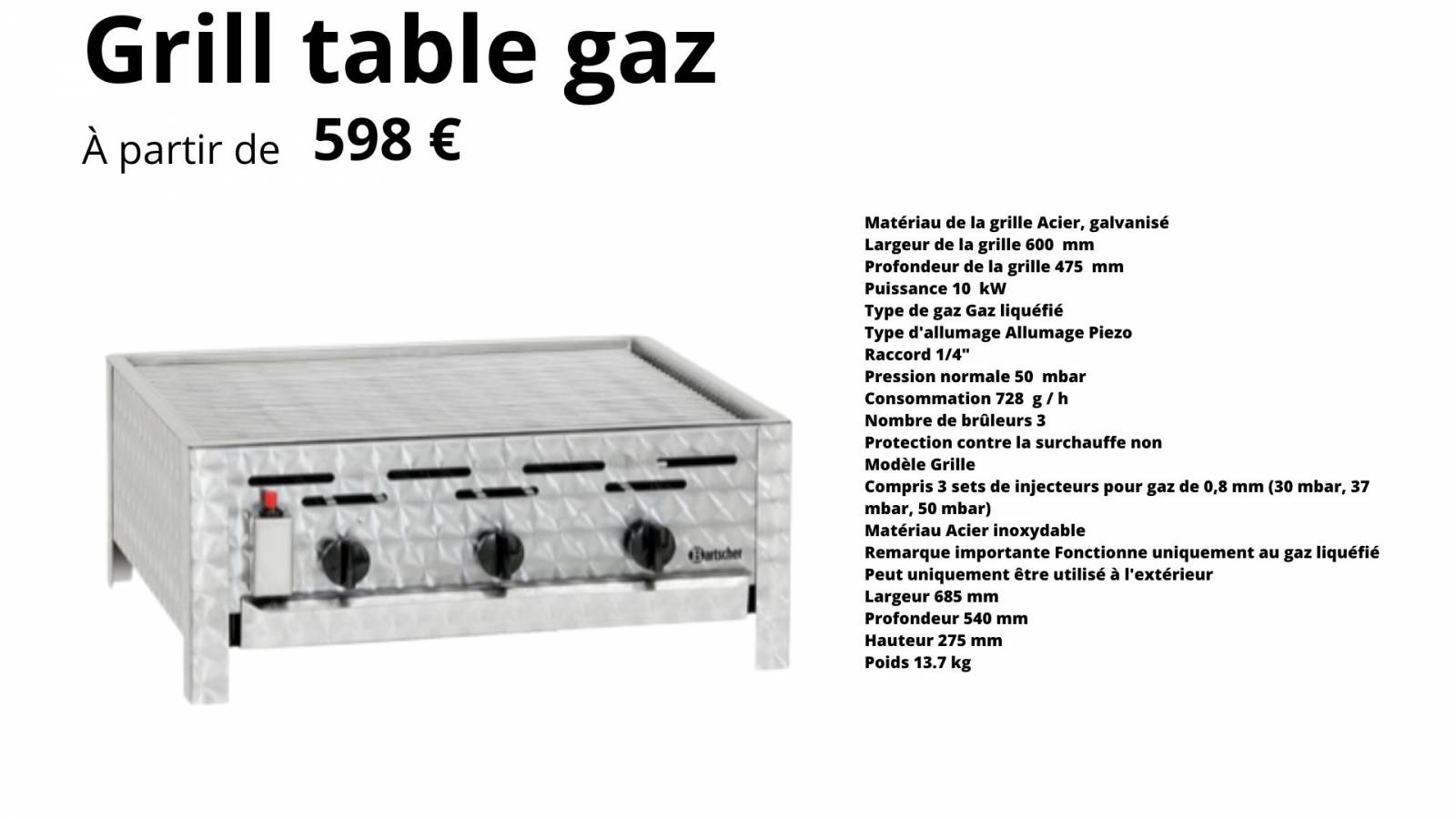 Compris 3 sets de injecteurs pour gaz de 0,8 mm (30 mbar, 37 mbar, 50 mbar)